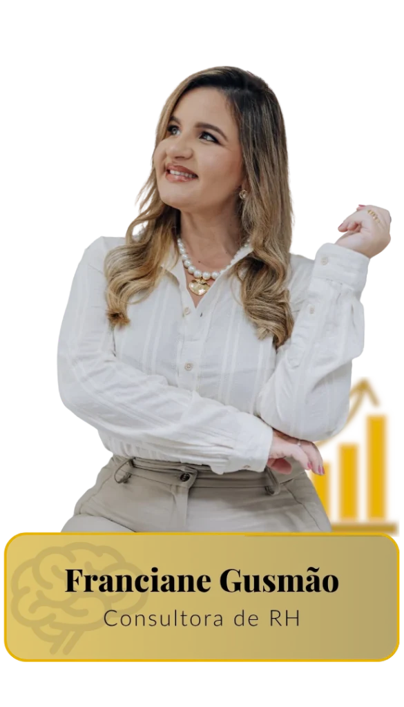 Franciane Gusmão é uma renomada consultora de Recursos Humanos com mais de 15 anos de experiência no mercado. Especialista em Desenvolvimento Humano, Recrutamento e Seleção por Competência, People Analytics, Gestão de Pessoas e Liderança, atua com foco em estratégias organizacionais que geram resultados reais.